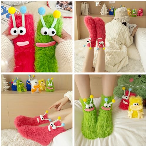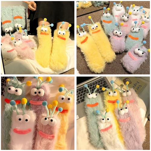 • 1.Material Soft & Comfortable: These fuzzy socks are made of high quality polyester to ensure that they feel soft and comfortable against the skin.The fluffy texture is cozy and comfortable, perfect for hanging out at home or even wearing to bed.