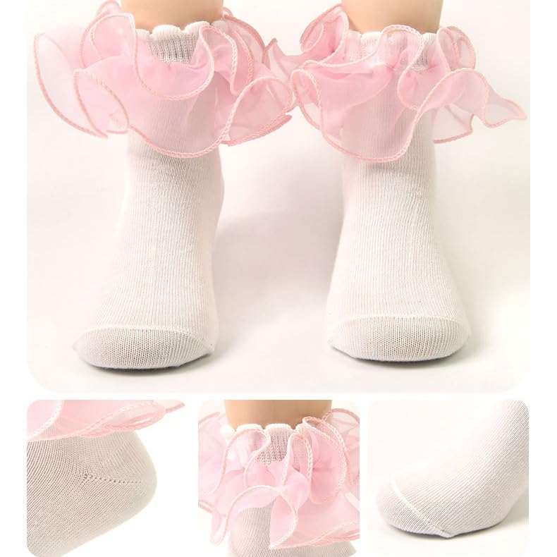• Skin-Friendly Cotton: The girls double-layer ruffler lace socks made of 88% premium cotton.these socks are gentle on the skin,let your kids feel soft, breathable and comfortable.
