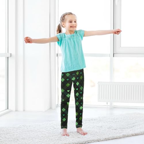 Vdsrup Girls Leggings Green Black Plaid Hearts Kids Length Leggings Pants Toddler Athletic Soft Tights Trousers 4T 7