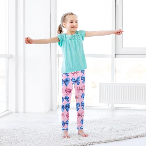 Girls Leggings Blue Bows Pink Soft Toddler Leggings for Girls Kids Pants Size 4T-10T 6