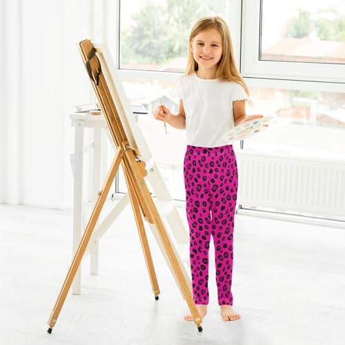 Girls' Athletic Leggings Ankle Length Yoga Dance Pants Kids Teen 4T Fluorescent Purple Leopard 6