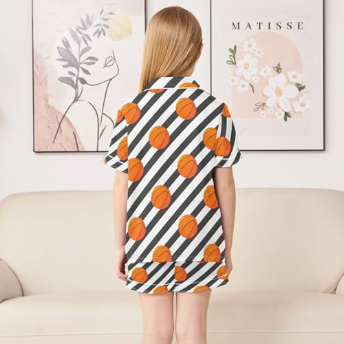 Basketballs Stripes Pajamas Set Summer Button Down Sleepwear Pjs Sets Comfy Loungewear 4