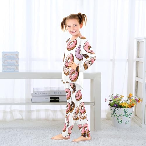 HOT ! Donut Pattern with Sprinkles Soft Pajama Set for All Seasons,Breathable Pjs Long Sleeve Sleepwear,Comfy Loungewear 2 Piece Underwear Set 5T
