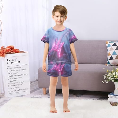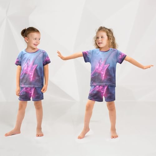 Pajama Sets Short Sleeve Glowing Electric Guitar Artwork Soft Cotton Summer Sleepwear 2 Piece PJS Size 5-14T 6