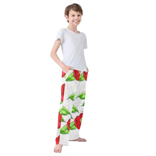 J JOYSAY Camellia Flower Foliage White Pajamas Pants Soft Long Pajama Bottoms Lounge Sleep Pants Size S-XL 7