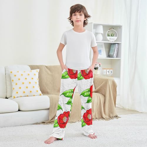 More information about J JOYSAY Camellia Flower Foliage White Pajamas Pants Soft Long Pajama Bottoms Lounge Sleep Pants Size S-XL
