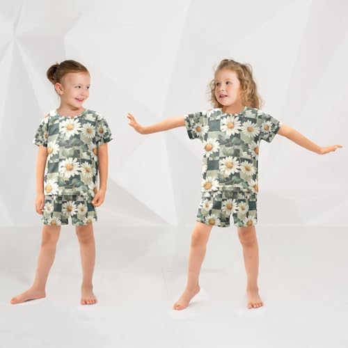 ALAZA Daisy Flowers Geometric Pajama Set Short Sleeve Sleepwear Soft Lounge Nightwear 1