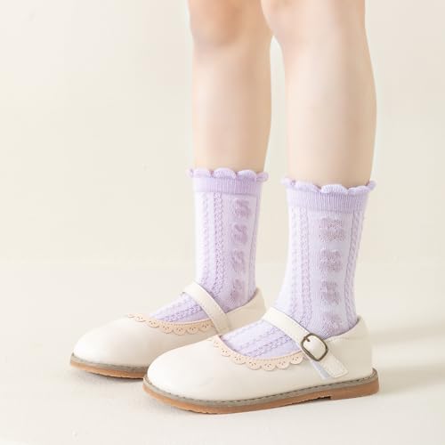 Meeshine 5 Pairs Toddler Girls Ruffle Ankle Socks Lightweight Cotton Solid Color School Dress Crew Socks for Kids 1-8T 6