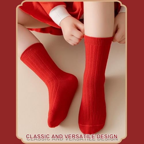 Socks for Kids Mid-Calf Red Solid Ribbed Cuffs Crew Socks Christmas or China New Year Festive Kids Socks 3 Pairs 6