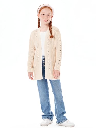 • Unique Design: Girl's long sleeve cardigan sweater, open front, oversized loose fit style, solid color, chunky knitted texture, special knit cardigan with a bit of hollow, split hem design, below hip length, casual long sweater outerwear winter coats for girls, straight ribbed hemline and cuffs