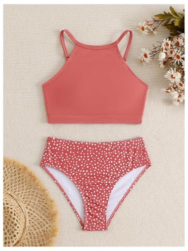 HOT ! OYOANGLE Girl's 2 Piece Tankini Set Polka Dots High Waisted Bikini Set Beach Sports Bathing Suit