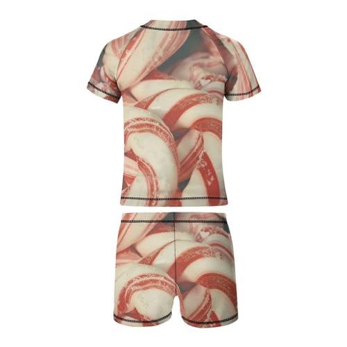 Peppermint Candy Canes ChristmasChildren's Casual Swimsuit Set - Simple and Versatile 4