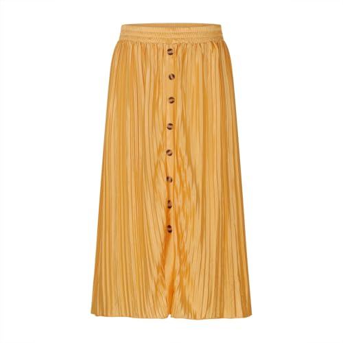 HOT ! Women's Elastic High Waist Pleated A-Line Midi Skirts Dressy Casual Trendy Button Down Business Work Long Skirt
