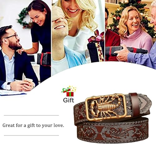 • 【Gold Scorpion Automatic Buckle】Striking gold scorpion buckle with embossed detailing adds bold, vintage charm, perfect for elevating jeans, casual pants, or western attire.
