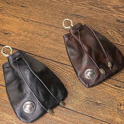 1Pcs Medieval Genuine Leather Drawstring Change Purse Key Ring Purse Coin Organizer Drawstring Gift Bag Jewelry Storage Bag Mini Multifunction Walle for Men & Women (Coffee) 1