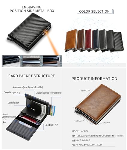 • This metal slim automatic minimalist wallet uses an Upgrade button to prevent your cards from falling. It won't fall out even if there's one card! One finger sliding button and it is easy to pick up the card you need. don't need to spend a long time finding the card you need.