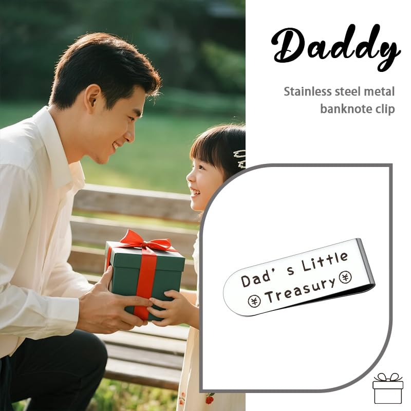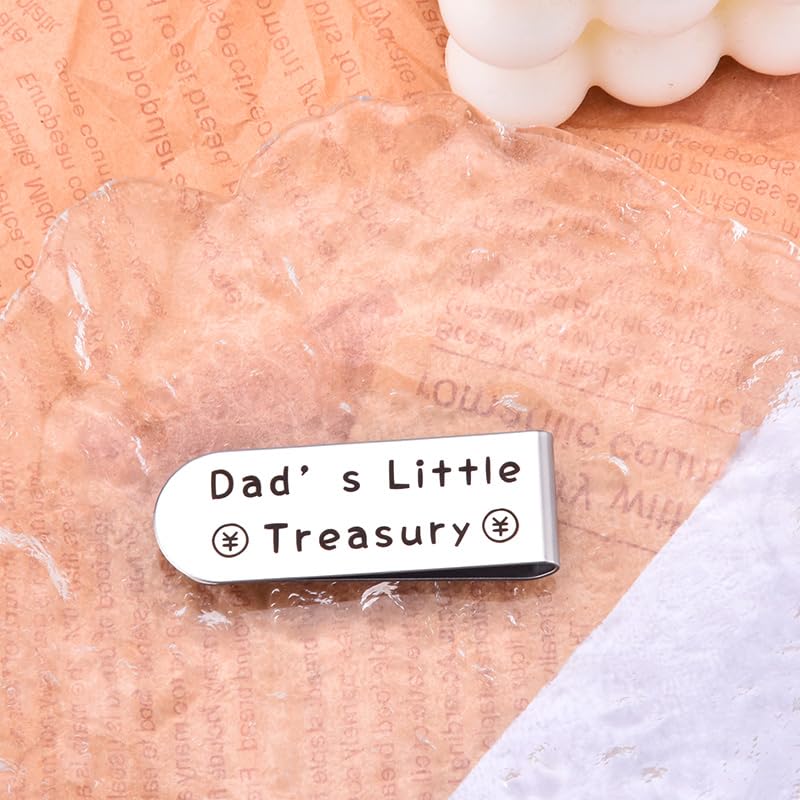 • Engraved Money Clip for Men Dad Father Daddy from Daughter Son: This dad stainless steel money clip engraved with: Dad's little treasury, which can make dad very happy as funny gift for men dad daddy father, also you can use it as hubby husband gifts from wife wifey, engraved gifts for men dad father daddy or wedding gifts for men dad father daddy