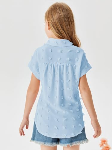 Haloumoning Girls Button Down Shirts Short Sleeve Kids Casual Chiffon Blouse Summer Tops T-Shirt 6