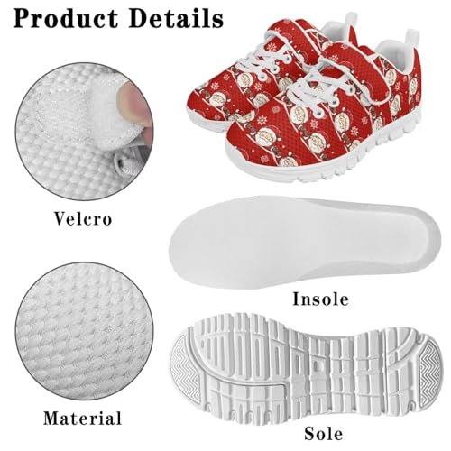 More information about Christmas Santa Claul Pattern Girls Shoes Non Slip Lightweight Breathable Comfortable Sport Walking Athletic Running Tennis Sneakers (Little Kid)(White Sole)