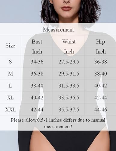 • 🩱【2 Snaps at Crotch Design】Designed with a flattering V-neckline, this slimming bodysuit effortlessly enhances your curves, giving you a sleek chic, classy, confident vibe.The long sleeves gracefully extend toward your wrists, providing both chic and warmth for those chilly days. Especially high elasticity and 2 snap-button fastening at the bottom making this bodysuit very easy to wear on and off.