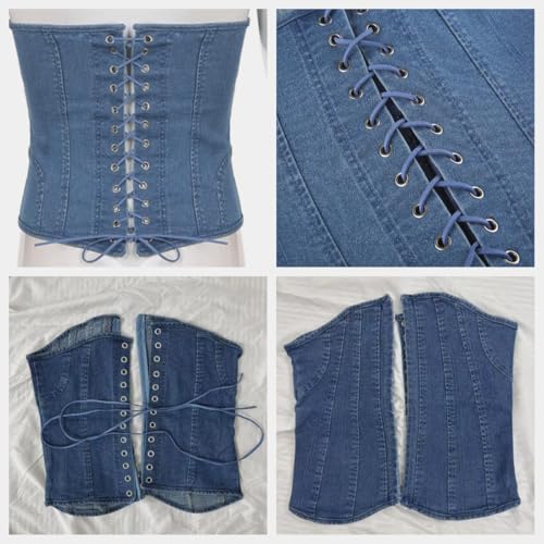 Denim Corset Top for Women, Denim Tube Top Sexy Sleeveless Slim Front Hook Waist Cincher Bustier Jean Corset Tops 5