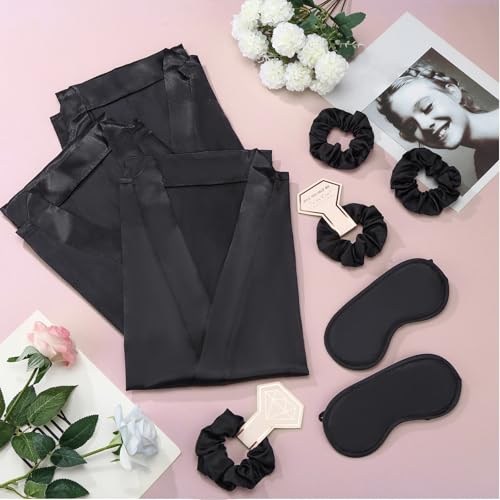 • Black Bridesmaid Robe Set: you will receive 6 pieces of bridesmaid robes in short style, 6 black eye patches, 6 hair scrunchies and 6 pink diamond paper cards, a total of 6 sets; The sufficient quantity and classic designs cover needs for bridesmaid wedding wear