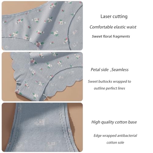 Seamless Underwear for Women Cotton Bikini Flower print Hipster Wavy Sides Invisibles Cheeky Panties 5 Pack 4