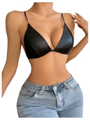 More information about WDIRARA Women's Pu Leather Bralette Underwire Bras Wireless Bralette Bra