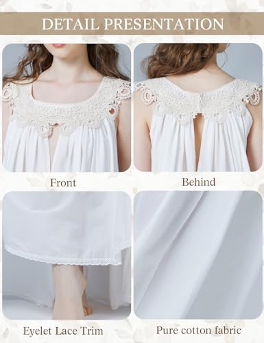 Victorian Nightgown for Women Vintage Nightie 100% Cotton Sleeveless Sleepwear Long Dress 4