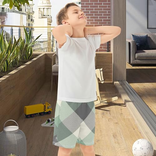 Athletic Shorts for Boys with Pockets Light Weight Kids Gym Short Pants Basketball Shorts for Boy Green Leaves Black Vintage 1