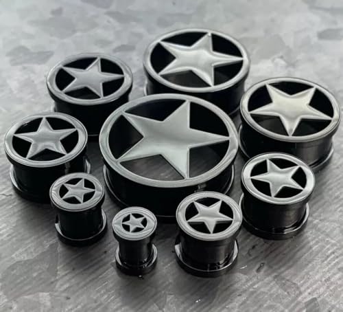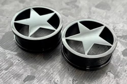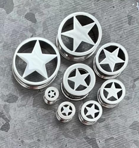 PAIR of Unique Surgical Steel Star Screw Fit Tunnels - Plugs - Gauges - Body Jewelry 7
