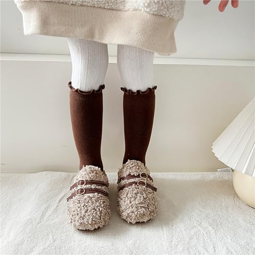 Breathable Terry Loop Hosiery Socks For Girls Toddler Cotton Knee High Ruffle Edge For Autumn Winter Warm Kids Socks 4