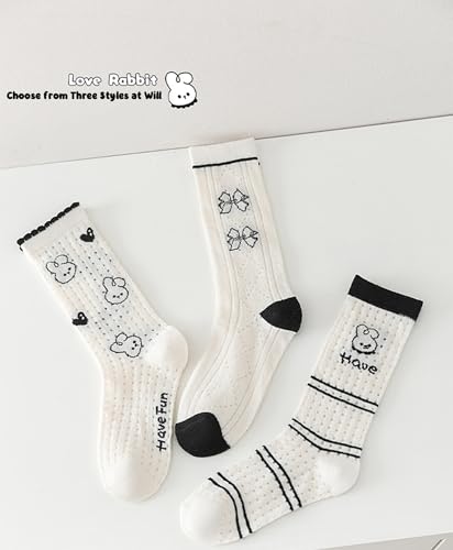 Boys Keen High Socks Ribbed Cuffs Crew Socks Over The Calf Stripes Cartoon Black White Cute Girls Socks 3 Pairs 5
