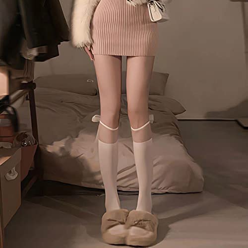 Fashion Hot Girls Mid-calf Socks Stitching Designed Bowknot Decor Girls Dress Under Knee Stocking Calf Socks 5