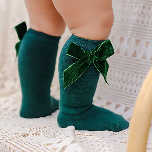 Baby Girls Knee-high Socks Velvet Bow Infant Toddler Girls Long Stocking Princess Classic Cotton Knit Knee Socks 4
