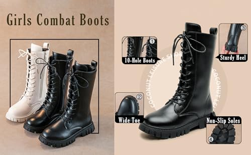 • 【Premium Leather & Lug Sole Construction】: Crafted from durable PU leather, these boots for girls are built to withstand daily wear and tear, ensuring long-lasting use. The rugged lug sole enhances traction and stability, making these combat boots for girls safe for walking on different surfaces like sidewalks or playgrounds