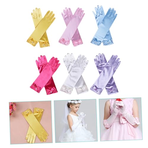 6pairs Boys and Girls Satin Long Gloves Elegant Dress Accessory for Flower Girls Parties Weddings and Performances Comfortable Fit for Boy Girl and Stylish 5