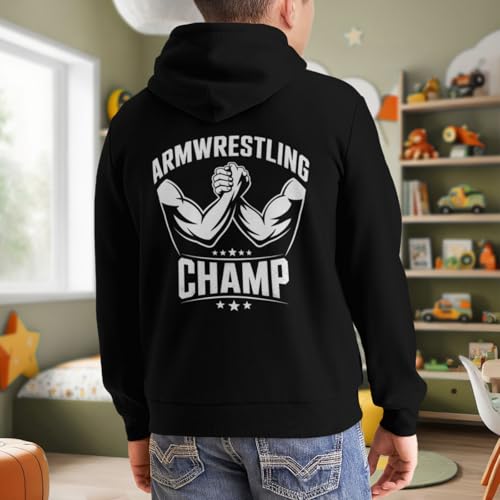 HOT ! Kids Vintage Arm Wrestling Champion Boys Girls Lightweight Kangaroo Pocket Fleece Hoodies