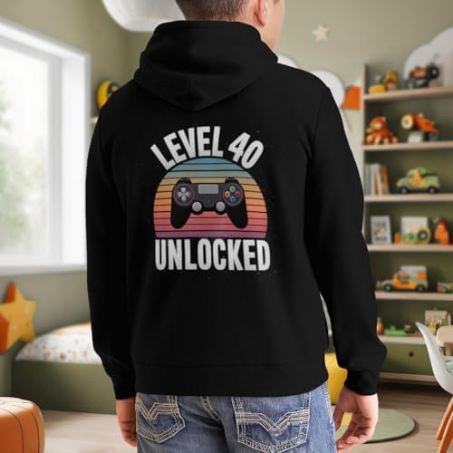 HOT ! Kids Level 40 Unlocked Video Gamer 40th Birthday Gift Boys Girls Lightweight Kangaroo Pocket Fleece Hoodies