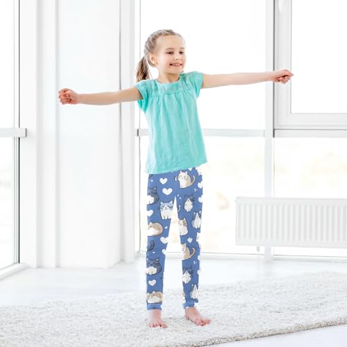 Cute Cats White Girls' Leggings Toddler Doodles Heart-Shaped Kids Yoga Pants Dance Active Tights 4T 7