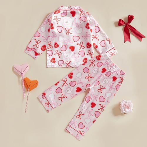 • Classic Features: Valentines day pajamas kids, girls valentines day pajamas, toddler valentines pajamas, long sleeves, turn down collar, button up, silky girls pajamas, fall pajamas, toddler spring pajamas, full of cute pattern printed 2 piece pajamas set, valentines pajamas kids, valentines day pajamas toddler, heart/bow/flower girls' sleepwear