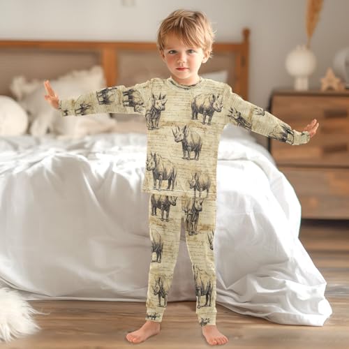 Pajama Sets Long Sleeve Retro Rhinoceros Pattern Soft Comfy Sleepwear 2 Piece PJS 3-8T 2