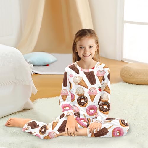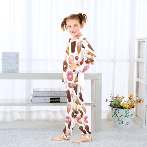 Sweet Desserts Pattern Print Soft Pajama Set for All Seasons,Breathable Pjs Long Sleeve Sleepwear,Comfy Loungewear 2 Piece Underwear Set 5T 7