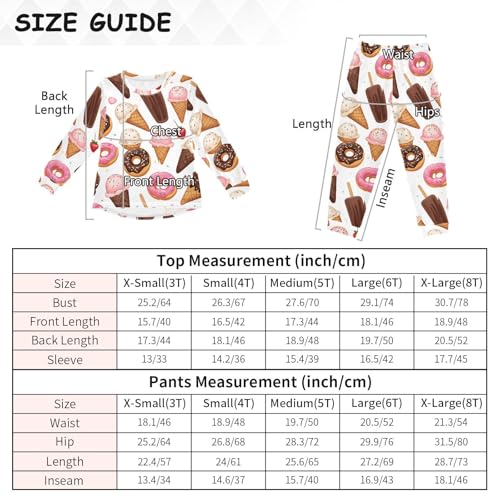 HOT ! Sweet Desserts Pattern Print Soft Pajama Set for All Seasons,Breathable Pjs Long Sleeve Sleepwear,Comfy Loungewear 2 Piece Underwear Set 5T