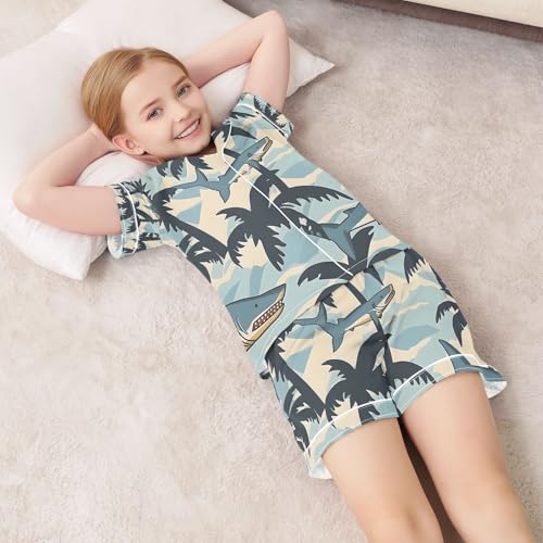 senya Coconut Tree Shark Satin Summer Pajama Sets Silk Short Sleeve Button Down Sleepwear 1