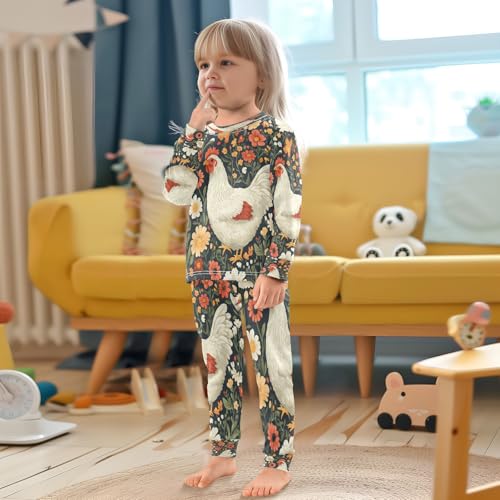 Pajama Sets Long Sleeve Floral Cute Hen Pattern Soft Comfy Sleepwear 2 Piece PJS 3-8T 2