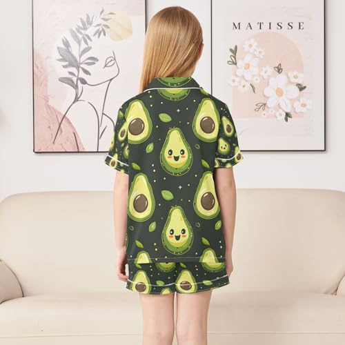 senya Cartoon Avacado Smile Satin Summer Pajama Sets Silk Short Sleeve Button Down Sleepwear 6