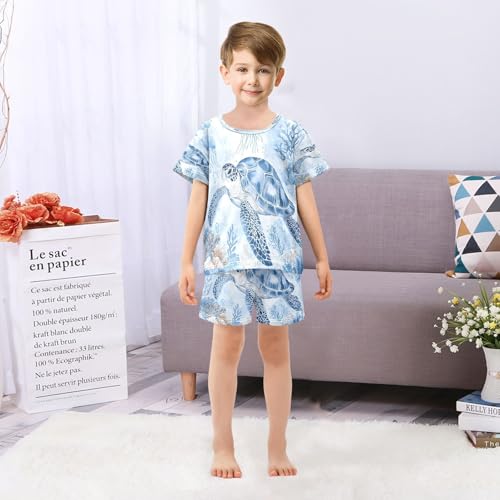 ALAZA Turtle Jellyfish Coral Reef Watercolor Pajamas Set Short Sleeve Cotton Sleepwear Summer Pjs 2 Piece 5-14Y 6