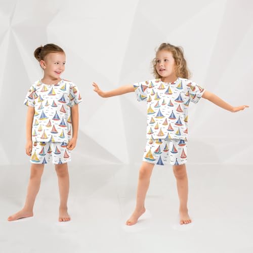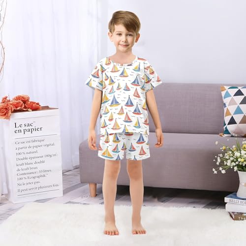 ALAZA Boat Cartoon Pajamas Short Sleeve 2 Piece Sleepwear Top and Bottom Pajama Set Unisex 2