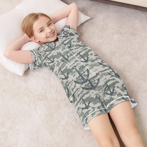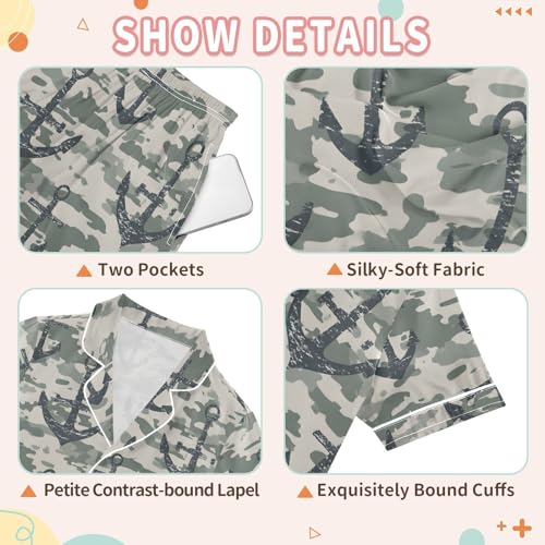ALAZA Camouflage Anchor Retro Satin Pajamas Set Short Sleeve Button Down Sleepwear Summer Pjs 2 Piece 1